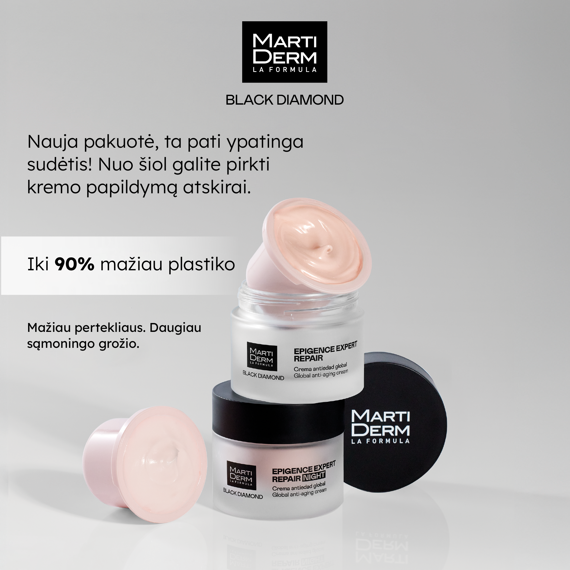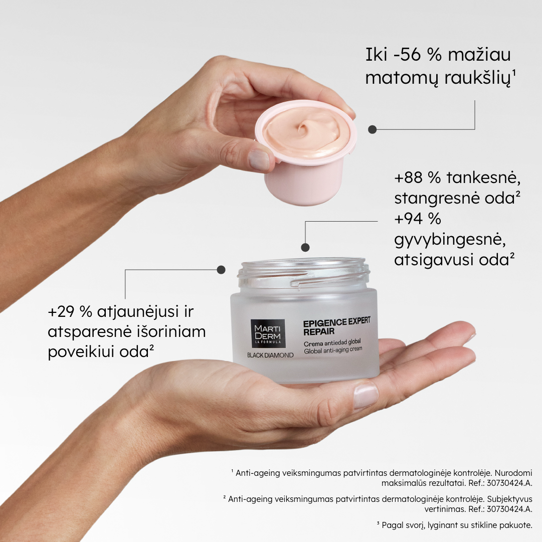 Išskirtinis odos senėjimą stabdantis kremas. Prokolagenas, elastinas ir hialurono rūgštis.